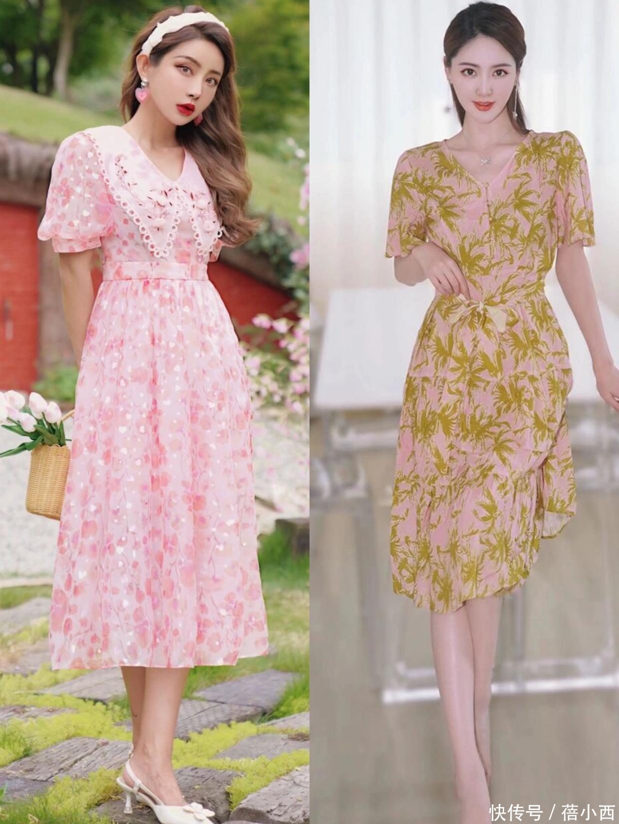 粉色系的碎花裙并阻止易操纵,因为岂论是粉色一经碎花齐很磨练穿搭者的气质,将粉色与绿色荟萃是可以的思法。