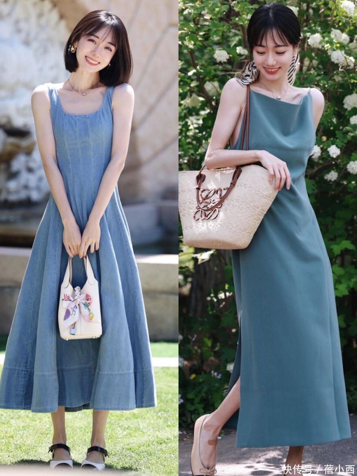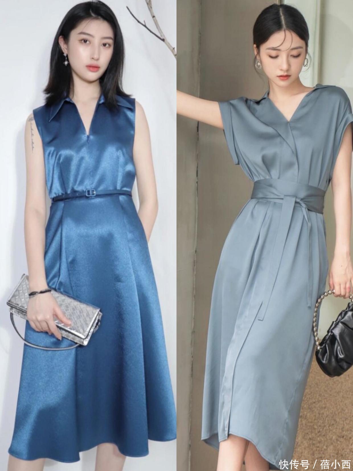 在太阳毒辣、天气盛暑的夏季,就不要再去遴荐厚内容地的连衣裙方法了,那样反而不透气。可以试试缎面质料的连衣裙。